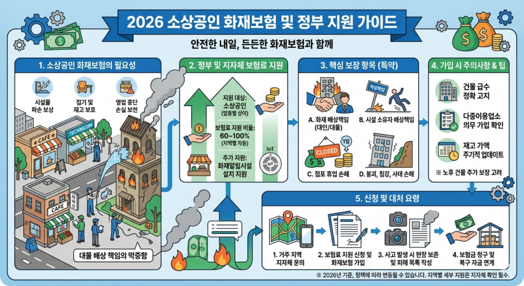 2026년 기준 소상공인이 꼭 알아야 할 화재보험의 종류와 정부 지원 혜택을 중심으로 상세 가이드를 작성해 드립니다.