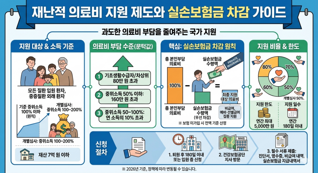 본 가이드에서는 2026년 기준 최신 정보를 바탕으로 재난적 의료비 지원사업의 상세 내용과 실손보험과의 관계를 심층적으로 다룹니다.